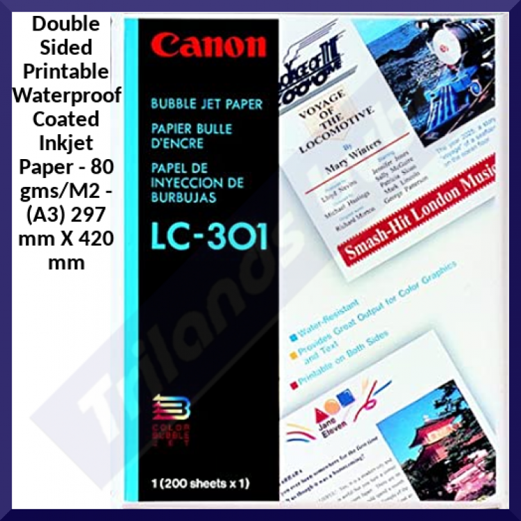 Canon LC-301 Double Sided Printable Waterproof Coated Inkjet Paper 1038A016 - 80 gms/M2 - (A3) 297 mm X 420 mm - 200 Sheets/Pack