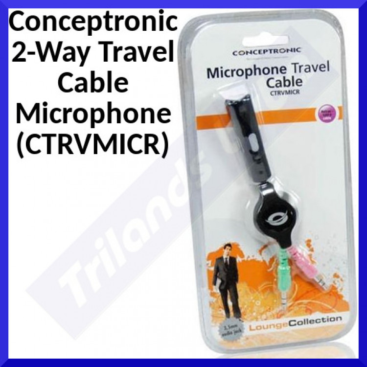 Microphone Travel CableConnect any earphone into a headset with this travel microphone with a mute button. Ideal for making internettelephony (VOIP) calls while travelling.